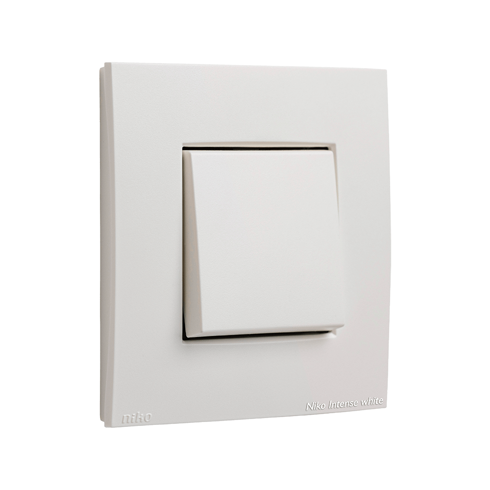 Het sample is geen volledige schakelaar, maar bestaat enkel uit de afdekplaat en de afwerkingsset. Er wordt geen mechanisme bijgeleverd.